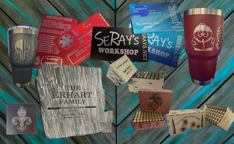 At Seray's Workshop, we specialize in personalizing wood, stone, metal, and more with precision lasers. Bring your ideas to life with our custom boxes and challenge coins tailored just for you.